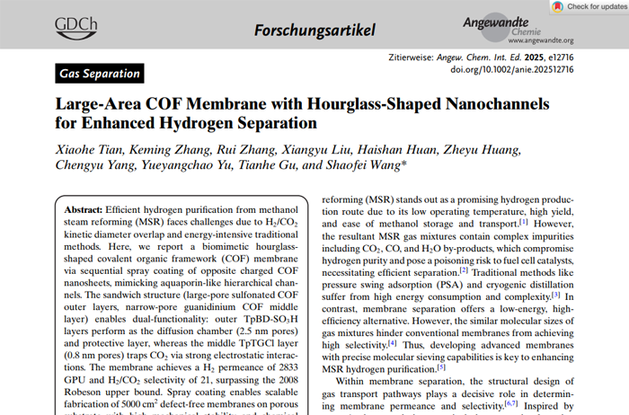 Large-Area COF Membrane with Hourglass-Shaped Nanochannels for Enhanced Hydrogen Separation