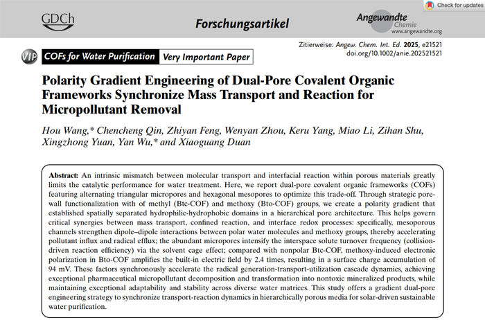 Polarity Gradient Engineering of Dual-Pore Covalent Organic Frameworks Synchronize Mass Transportand Reaction for Micropollutant Removal