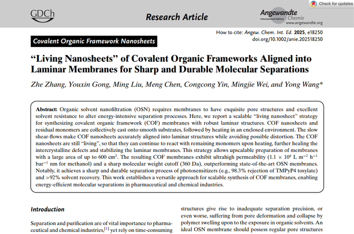 “Living Nanosheets”of Covalent Organic Frameworks Aligned into Laminar Membranes for Sharp and Durable Molecular Separations