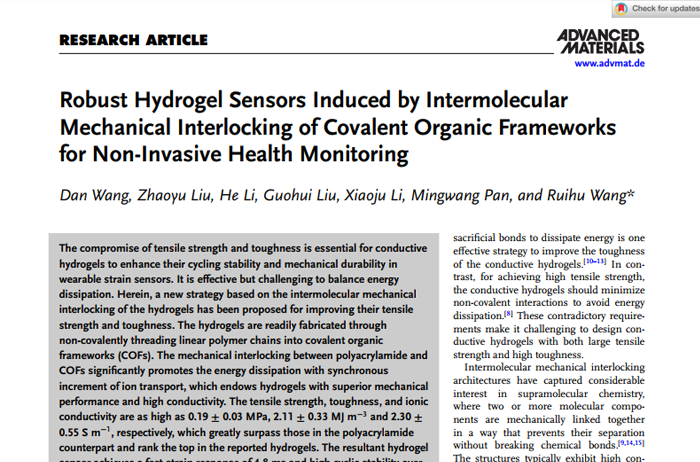 Robust Hydrogel Sensors Induced by Intermolecular Mechanical Interlocking of Covalent Organic Frameworks for Non-Invasive Health Monitoring