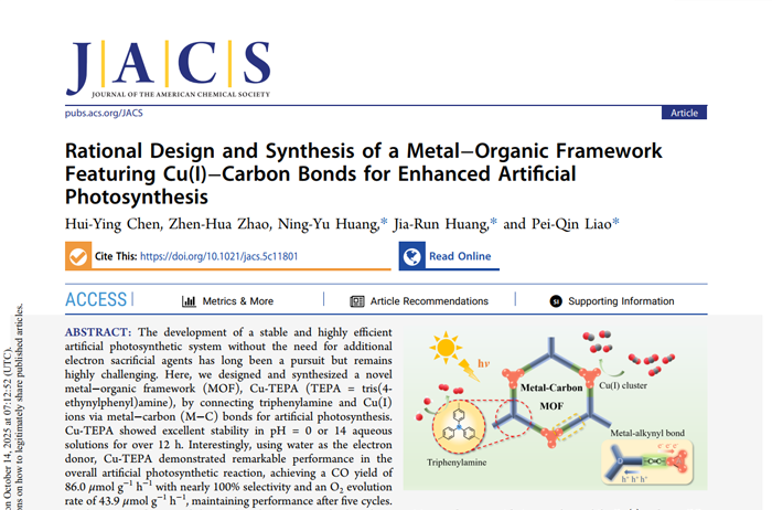 Rational Design and Synthesis of a Metal?Organic Framework Featuring Cu(I)?Carbon Bonds for Enhanced Arti?cial Photosynthesis