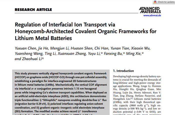 Regulation of Interfacial Ion Transport via Honeycomb-Architected Covalent Organic Frameworks for Lithium Metal Batteries