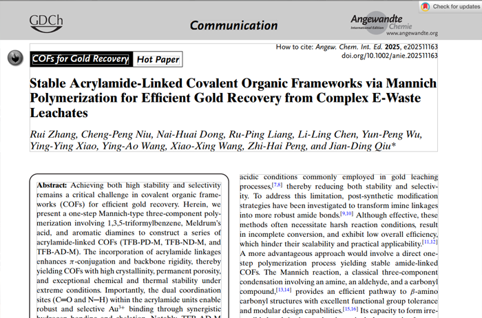 Stable Acrylamide-Linked Covalent Organic Frameworks via Mannich Polymerization for Ef?cient Gold Recovery from Complex E-Waste Leachates