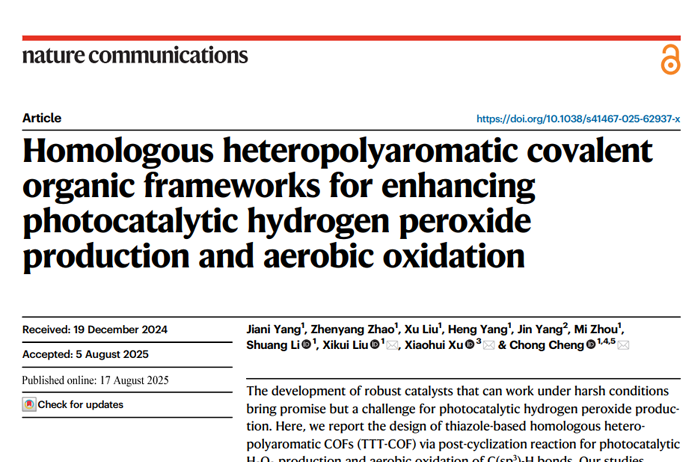 Homologous heteropolyaromatic covalent organic frameworks for enhancing photocatalytic hydrogen peroxide production and aerobic oxidation