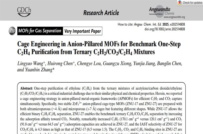 Cage Engineering in Anion-Pillared MOFs for Benchmark One-Step C2H4 Puri?cation from Ternary C2H2/CO2/C2H4 Mixtures