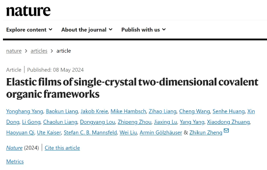 研伸客戶文章--Nature:單晶2D-COFs彈性薄膜