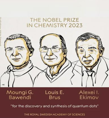 在當(dāng)今的材料應(yīng)用領(lǐng)域中,納米科學(xué)技術(shù)發(fā)展中的多個(gè)里程碑式工作也來(lái)自于量子點(diǎn)相關(guān)研究。量子點(diǎn)(Quantum dots, QDs)已經(jīng)成為備受矚目的技術(shù)革命之一。2023年10月4日,瑞典皇家科學(xué)院宣布,美國(guó)麻省理工學(xué)院的蒙吉·巴文迪(Moungi G. Bawendi)、美國(guó)納米晶體科技公司的阿列克謝·?;颍ˋlexei I. Ekimov)和美國(guó)哥倫比亞大學(xué)的路易斯·布魯斯(Louis E. Brus)榮膺2023年諾貝爾化學(xué)獎(jiǎng),表彰他們 “發(fā)現(xiàn)和合成量子點(diǎn)”的科學(xué)貢獻(xiàn)。